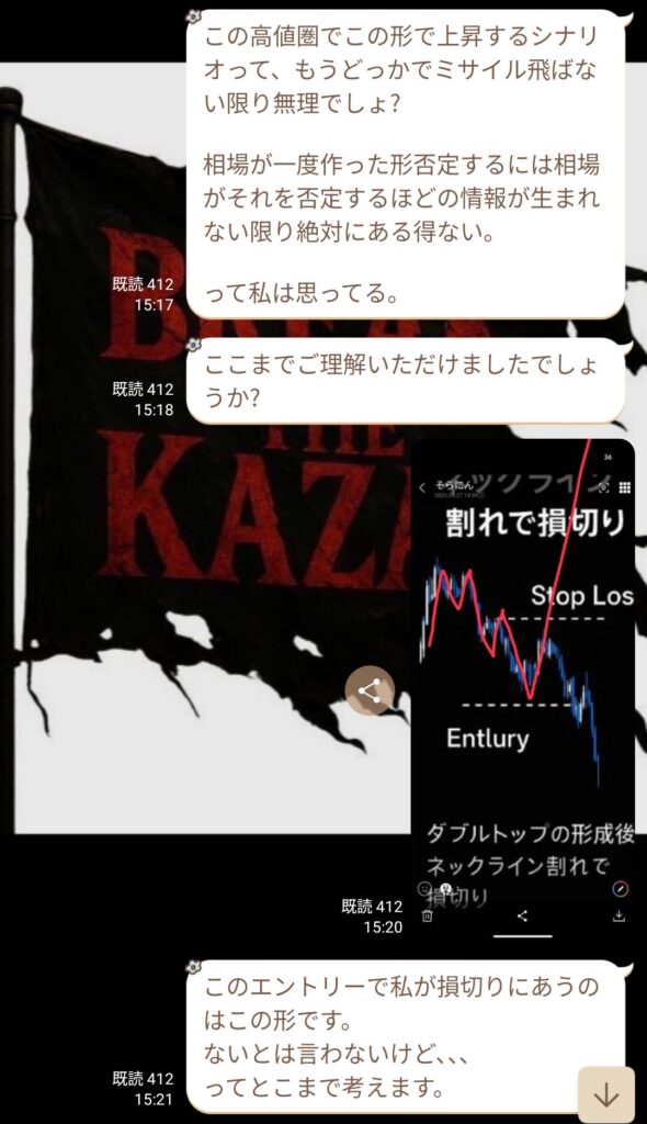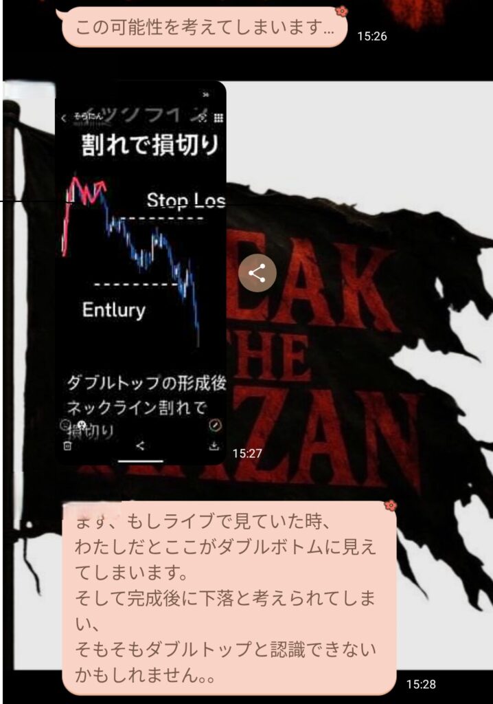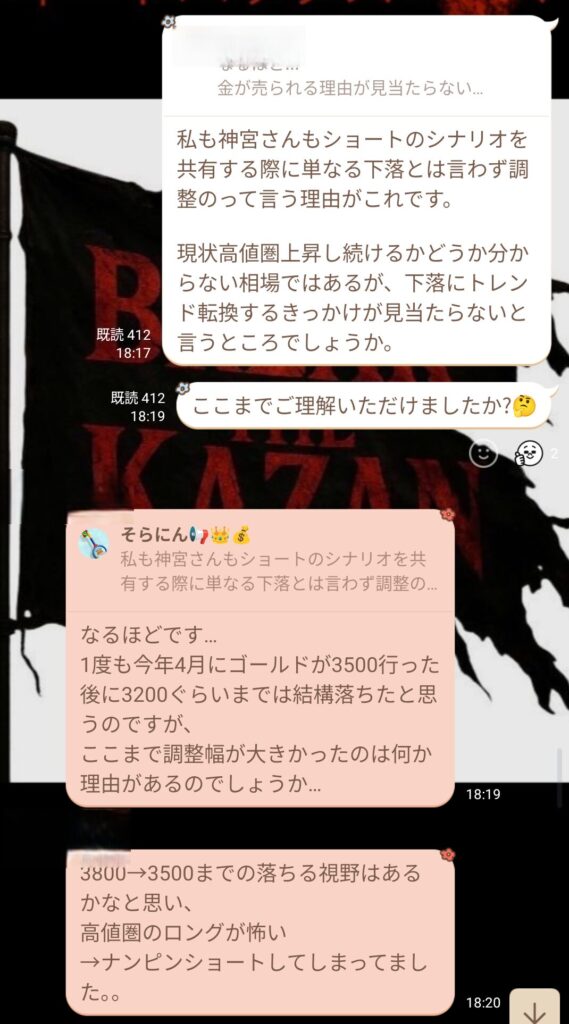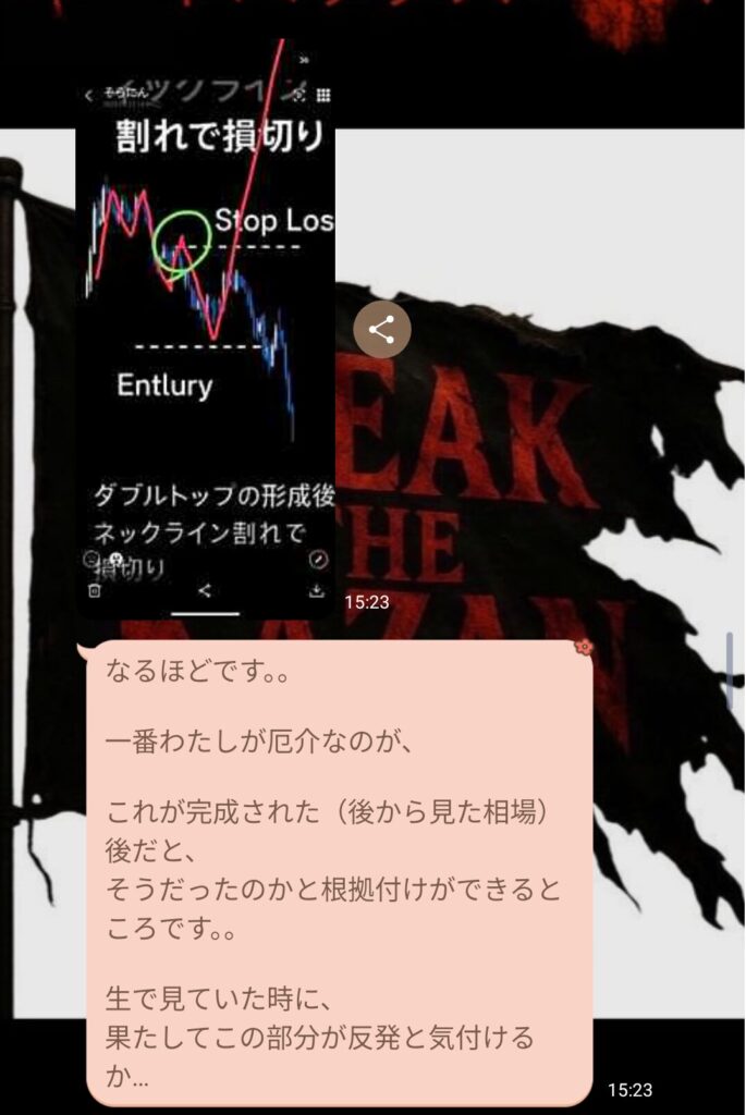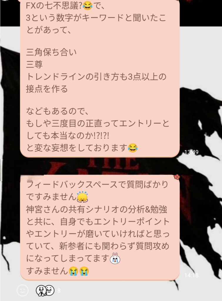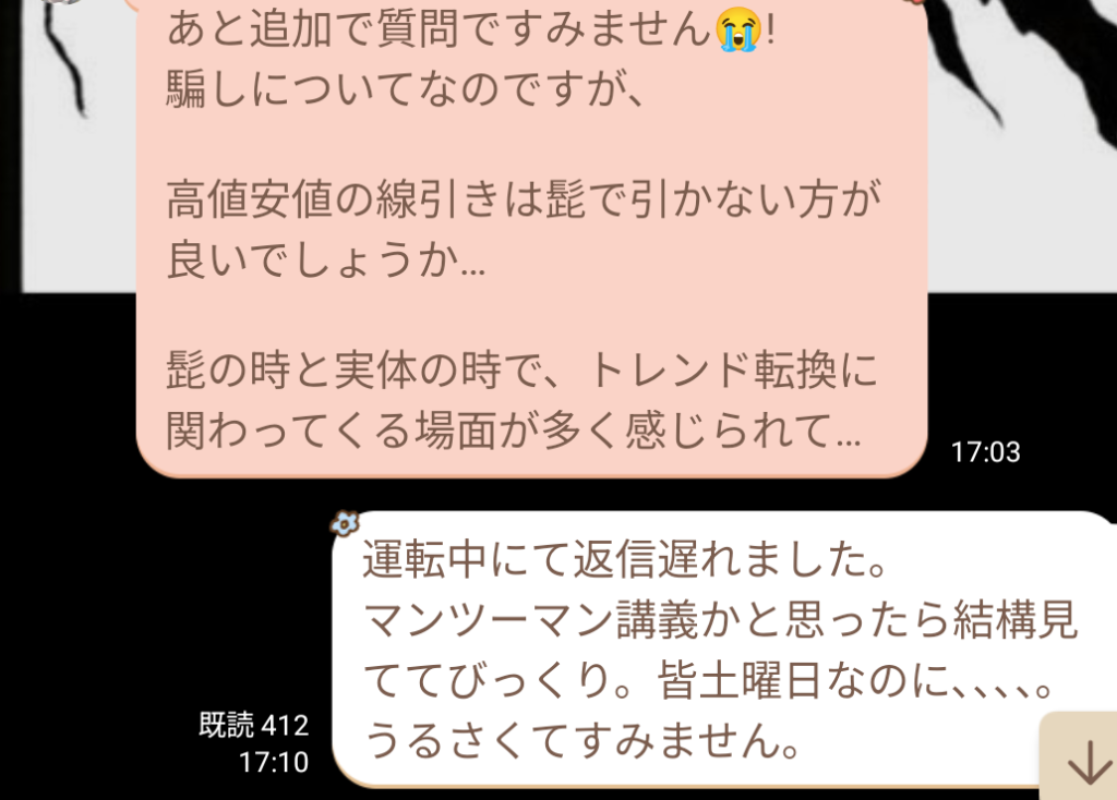 初心者と言っていたメンバーから、金曜日の私のトレードについての質問だった。