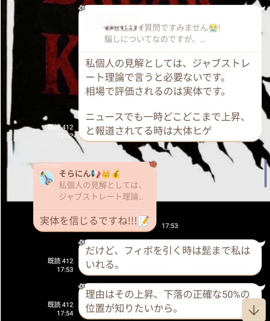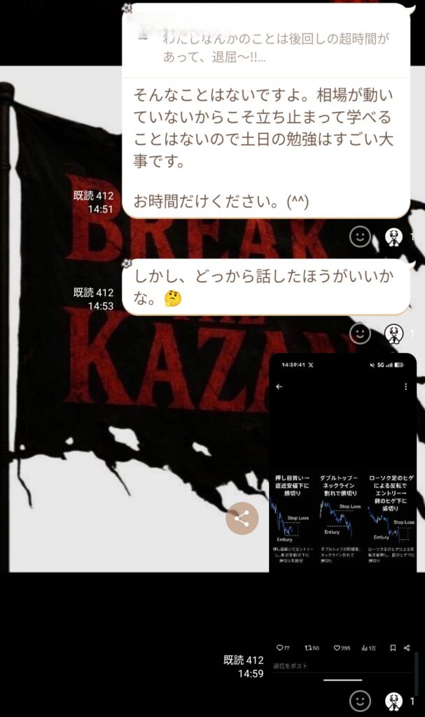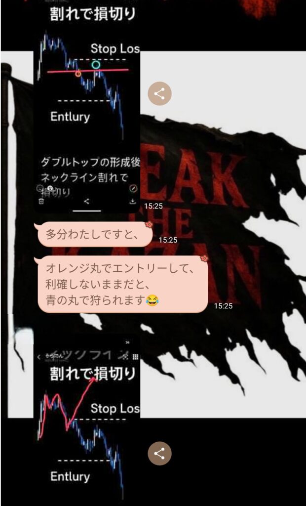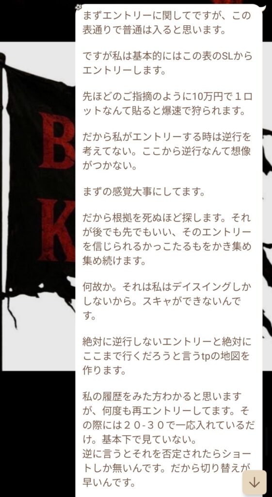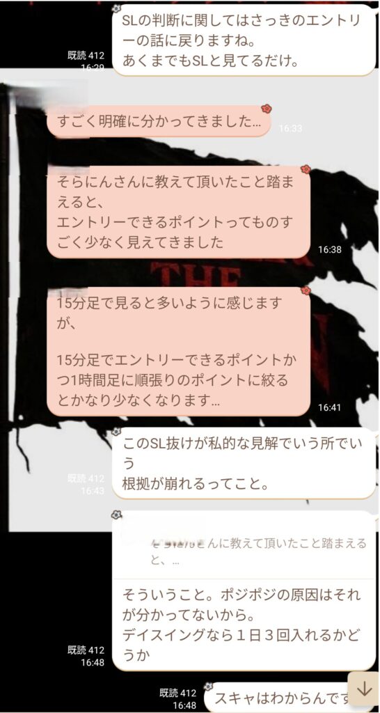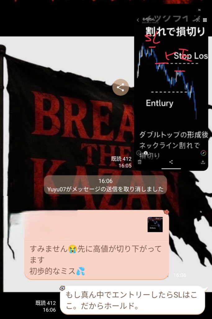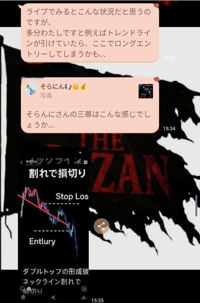 初心者と言っていたメンバーから、金曜日の私のトレードについての質問だった。