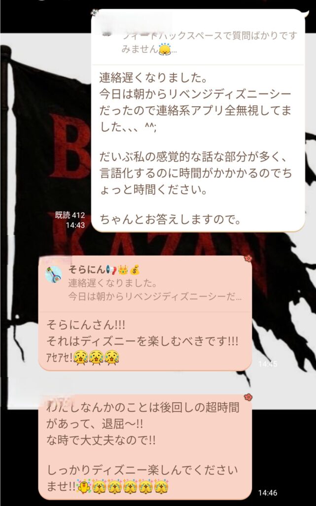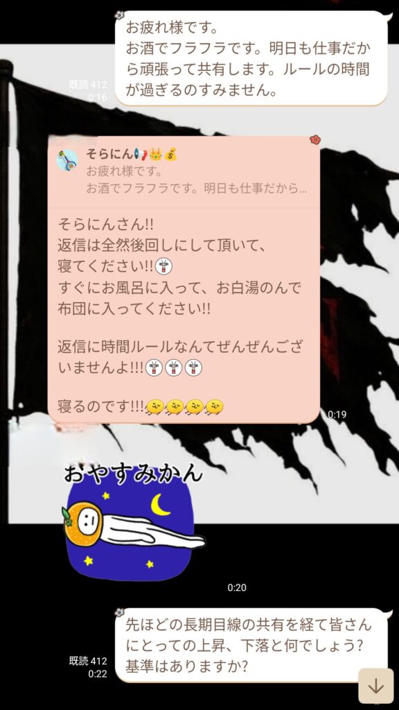 話していると、他のメンバーもポジポジ病の話をし始めた。1対1だと思っていたら、意外にも多くのメンバーが見ていた。講義の意義が広がっていくのが嬉しかった。