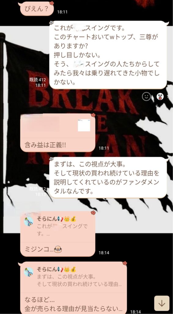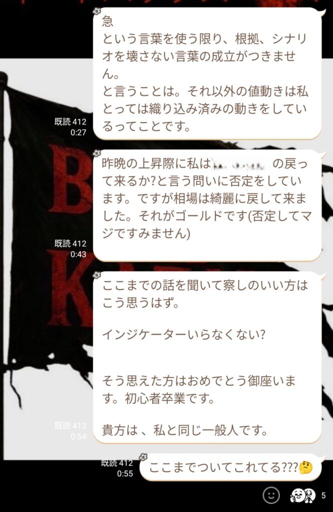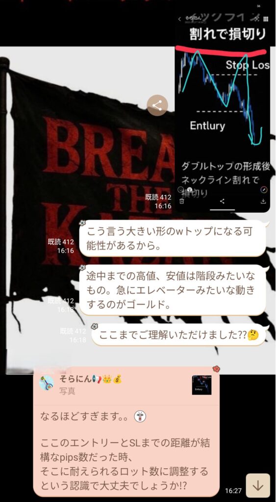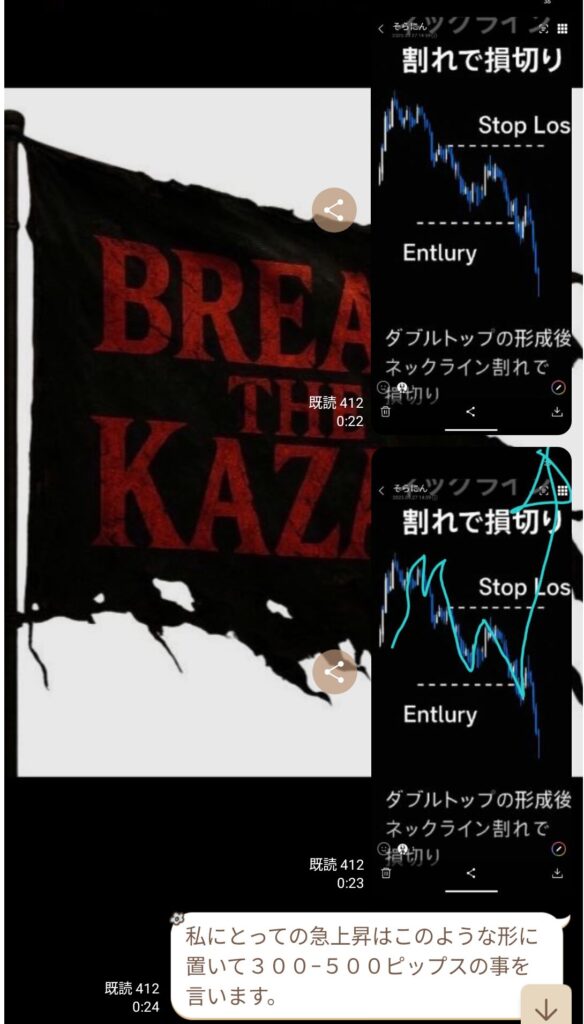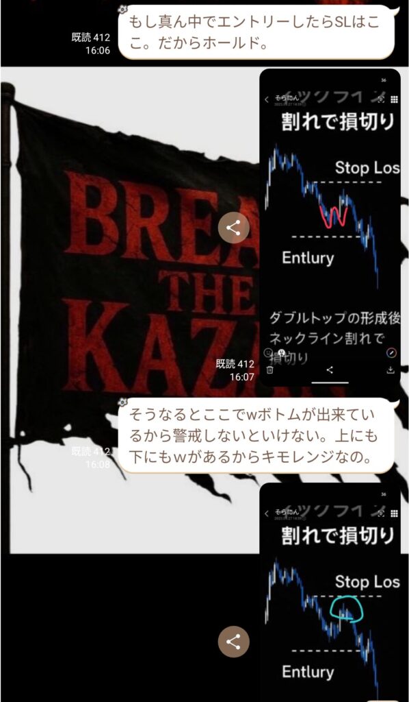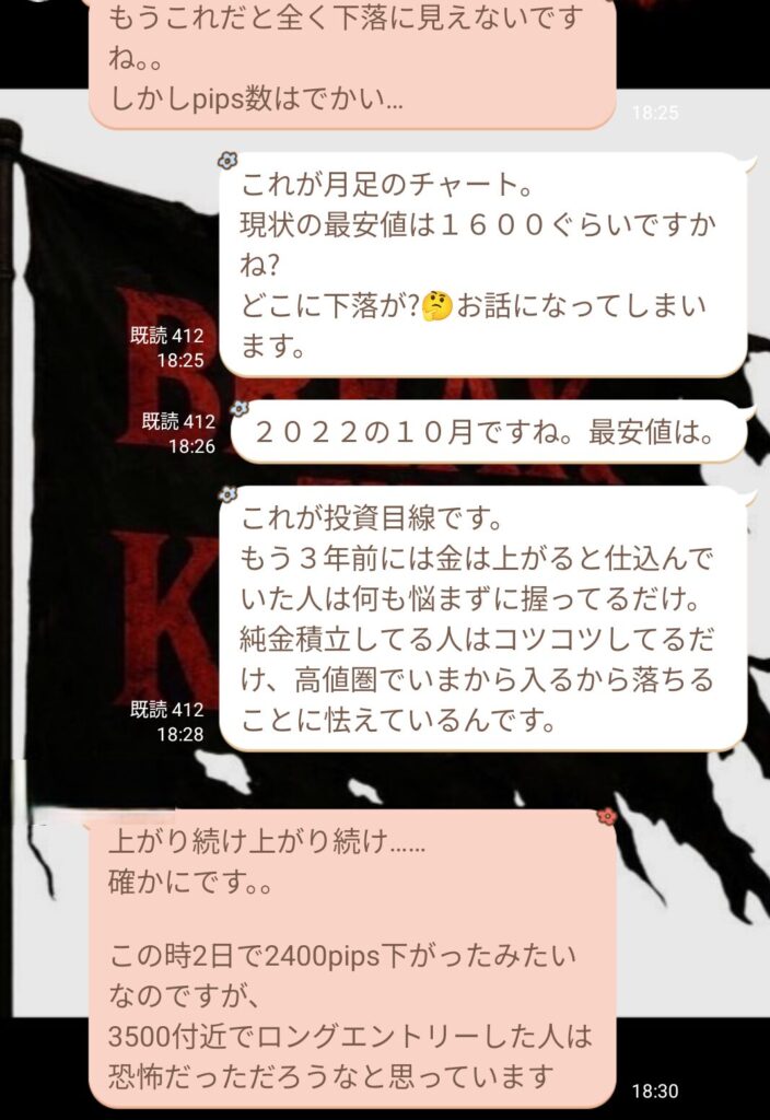 その後、初心者の方から質問が入り、話を聞いていると、ダウ理論をしっかり理解していないことが分かった。ライブで値動きを見ていると逆行が怖くなるのは分かるが、それは根拠の詰め方や情報の使い方が足りていないだけ。経験不足だと感じた。