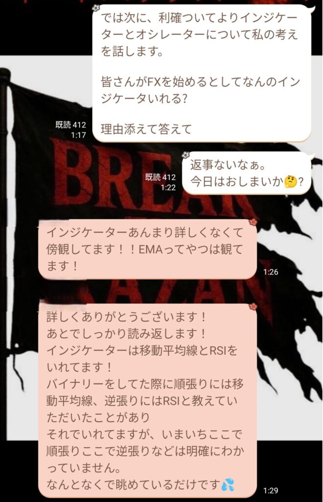 皆さんがトレードを始めるとして、何のインジケーター入れるのか理由を添えて答えて欲しいですとまずはみんなの考えを聞いた。