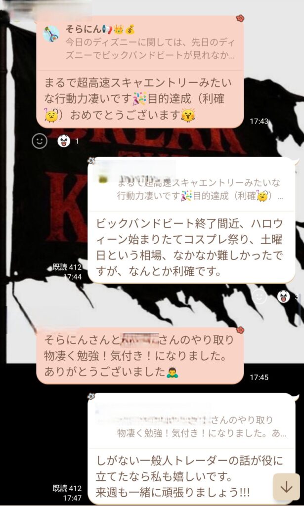 夕方には高校の同級生との小さな同窓会があったので、それまでは家族とディズニーに没頭できるよう、土曜日ということもあって相場もグループからの通知もすべて切り、1日中ディズニーを楽しんでいた。