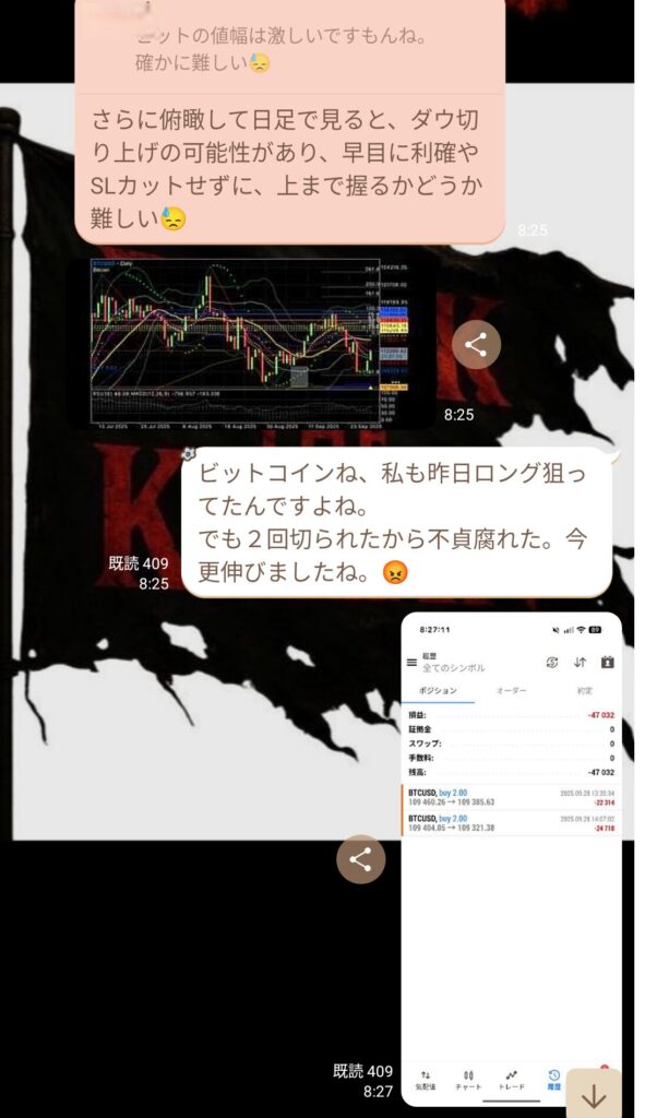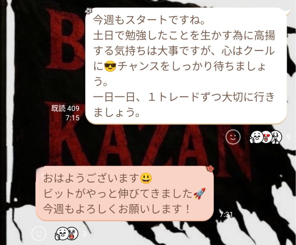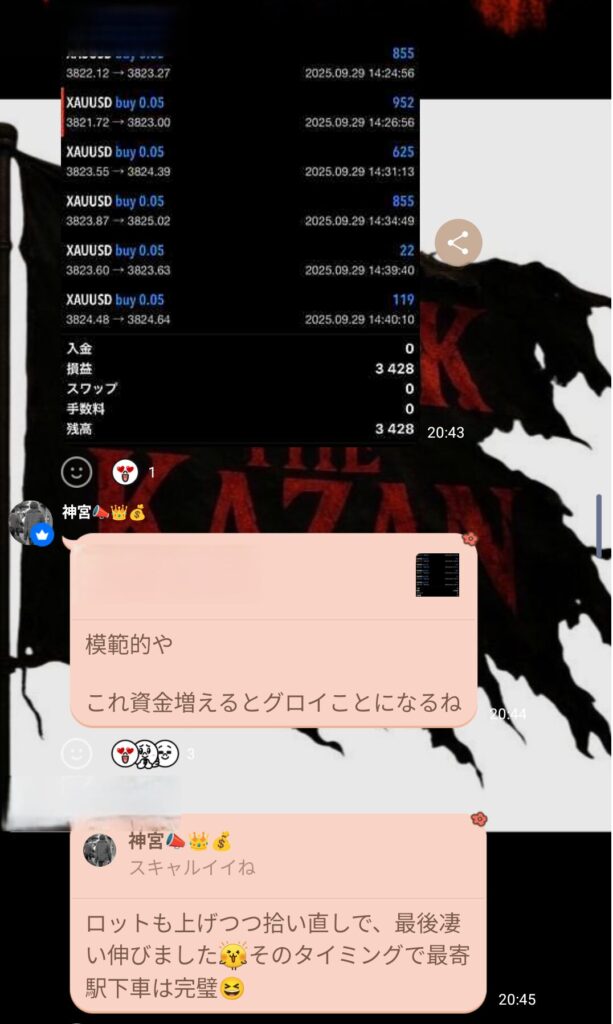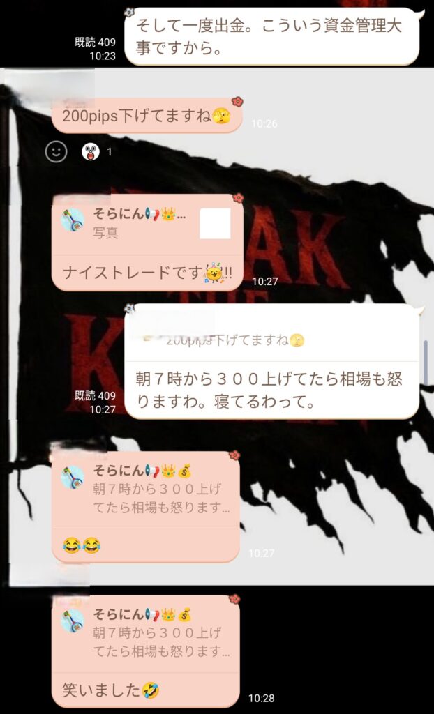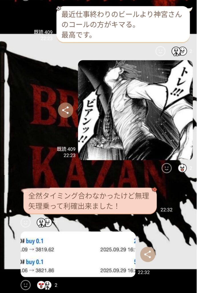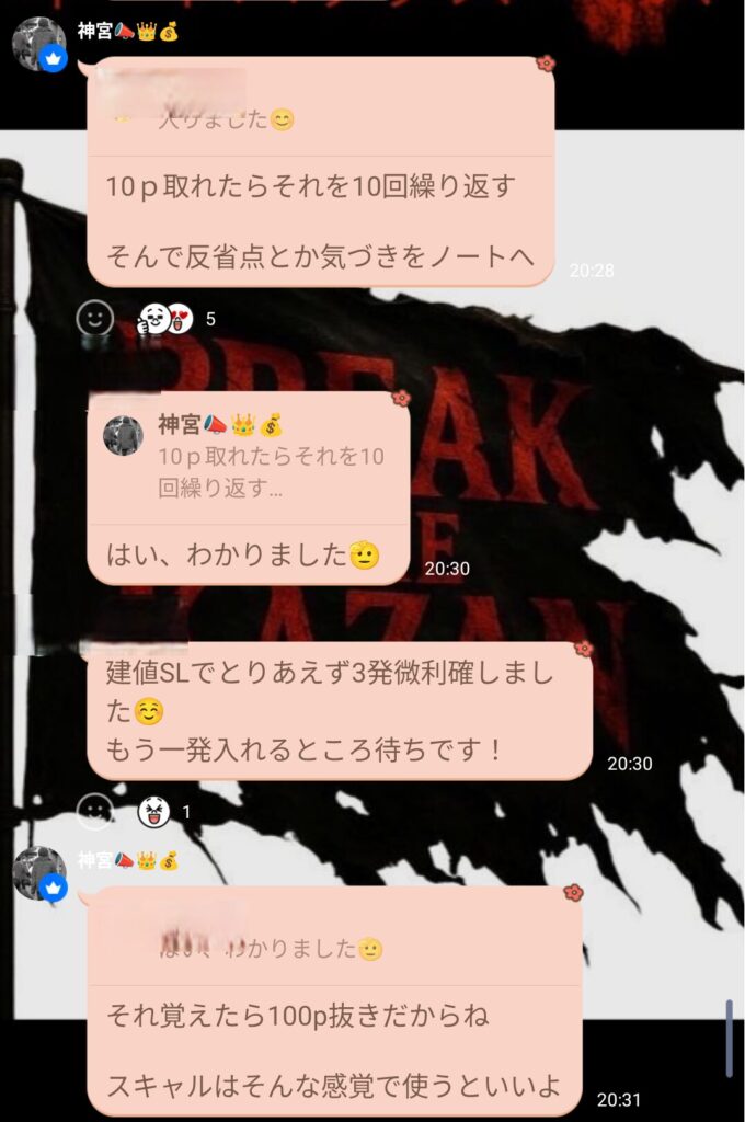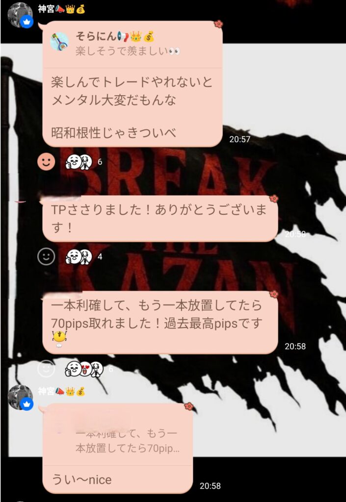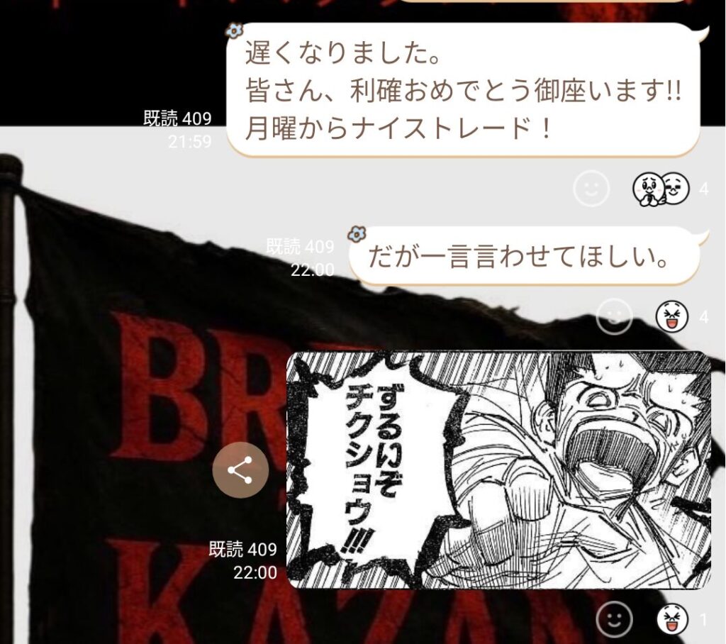スキャルでもデイスイングでも、グループが楽しくトレードできているのは良いこと。 神宮さんも“楽しむトレード”を意識しているので、私もリーダーとして昭和根性ではなく楽しさを大事にしようと思った。