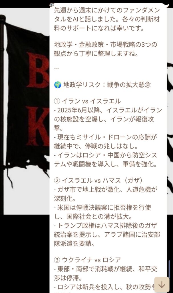 この時の相場状況についてAIと話していたが、当時の状況は地政学・金融政策・市場戦略の3つの観点から考える必要があった。