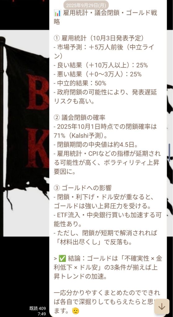 ゴールドへの影響としては、閉鎖・利下げ・ドル安が重なると強い上昇圧力がかかる状況。