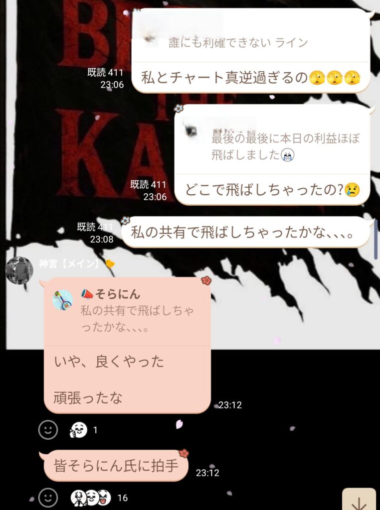 メンバーと話している中で、今日折角稼いだ利益を飛ばしたメンバーがいたらしく、
