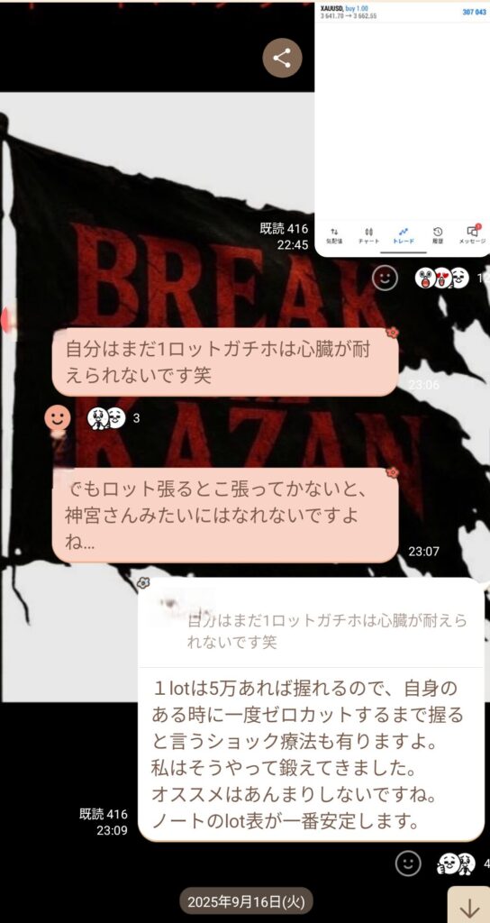 確かにロットを張ればマイナスの額が大きくなり、委縮する気持ちは分かる。 だが、大前提として“勝てるトレードを仕掛けている”はずなのに、 そこに過度な恐怖を持つことが、私には不思議だった。