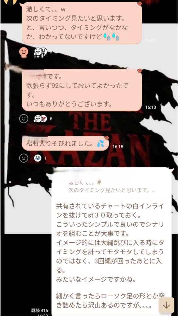 そのあとは神宮さんのシナリオもあり、 終日コールをし合ったり、エントリーや利確の報告で盛り上がりを見せた。