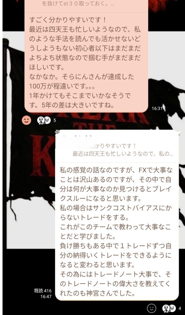 当時の四天王から 「シナリオを作って共有して、分析・考察で盛り上げていきましょう」 と言われ、 私も自分にできることをグループに還元したいと自然に思うようになった。
