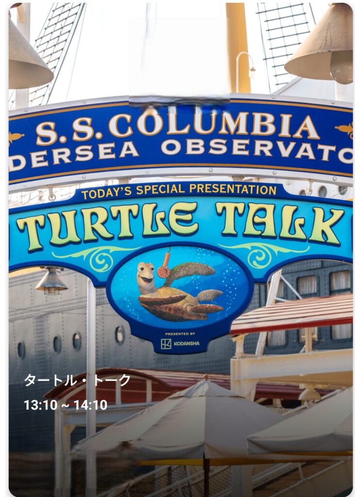 3. タートルトークへ:アナ雪の待ち列で入手したパス