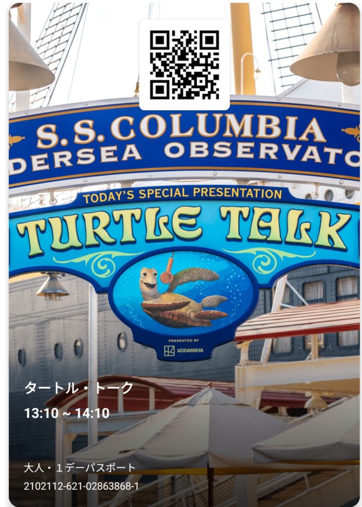タートルトークへ:アナ雪の待ち列で入手したパス